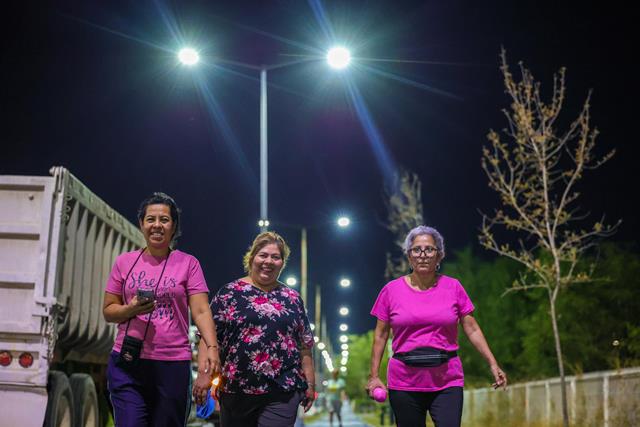 Quienes a diario acuden a ejercitarse, y más de 800 familias del sector, se benefician de la iluminación que abarca 15 cuadras, donde el Alcalde dirigió las cuadrillas de Servicios Públicos Primarios para instalar el nuevo sistema de alumbrado.