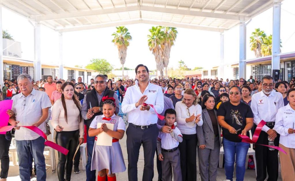 Entregó Alcalde Carlos Peña Ortiz nueva techumbre escolar y anunció pavimentación hidráulica en Villa Esmeralda