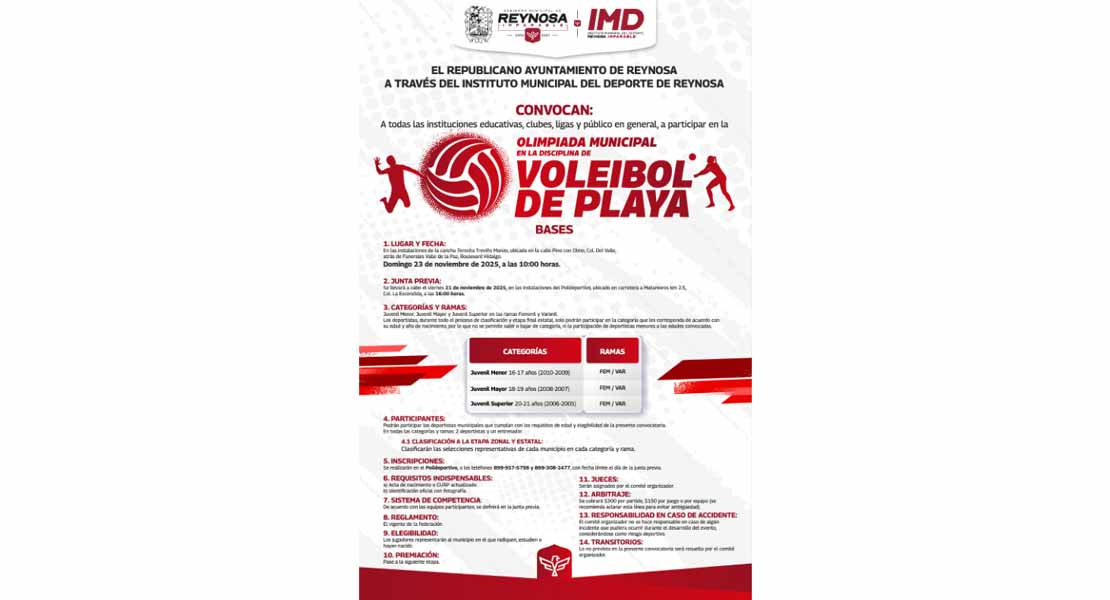 Invita Carlos Peña Ortiz a la convocatoria abierta de Voleibol de Playa