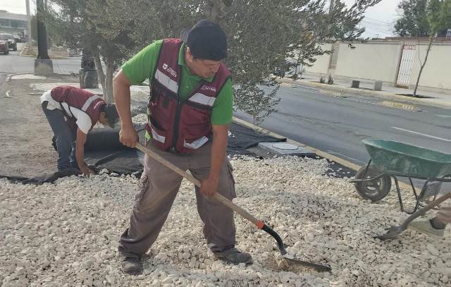 Gracias a peticiones ciudadanas, el personal llegó hasta la plaza pública de la colonia Loma Real, donde se llevaron a cabo actividades de limpieza general y se llevó a cabo la colocación de piedra ornamental sobre el camellón del bulevar Lázaro Cárdenas entre las calles Uruguay y Panamá de la colonia Anzaldúas.