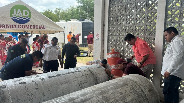 Esta capacitación fue impartida por el Jefe de Seguridad de la JAD, Carlo Martínez Guerra, y forma parte de los trabajos de preparación rumbo al simulacro binacional, el cual contempla escenarios de contingencia relacionados con el manejo de productos químicos utilizados en el tratamiento del agua potable.