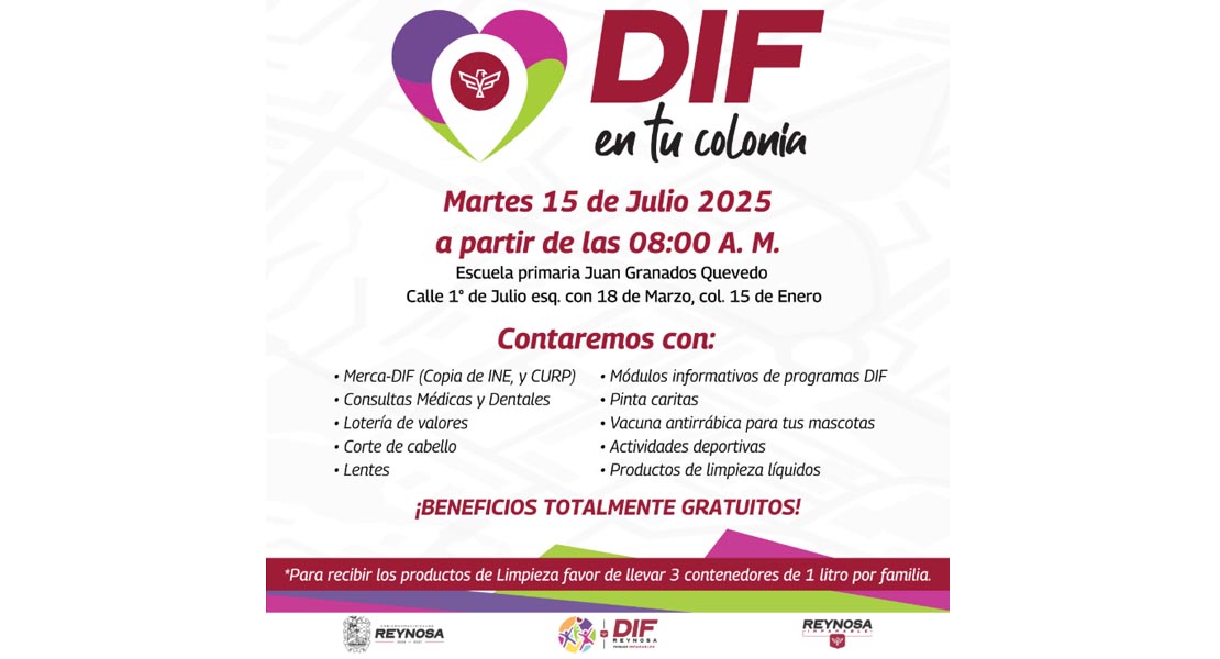 Llevará DIF-Reynosa servicios gratuitos con Brigada a la colonia 15 de Enero