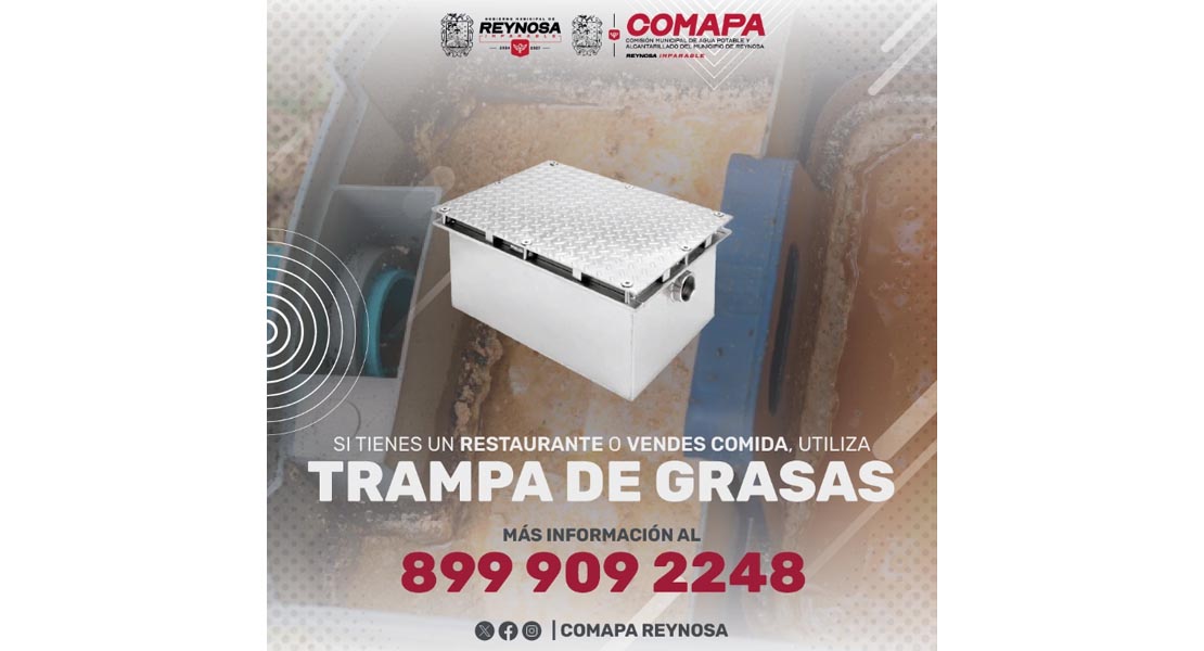 Exhorta COMAPA a comerciantes a instalar trampas de grasas