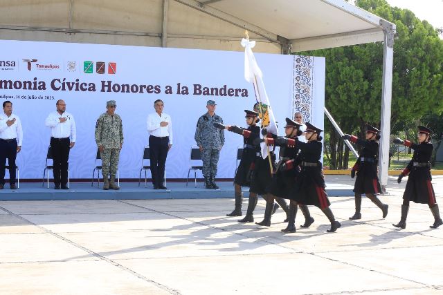 En la ceremonia cívica también estuvieron presentes: Jesús Amparán Hernández, coordinador estatal de la Guardia Nacional en Tamaulipas; Héctor Joel Villegas González, secretario general de Gobierno; Hernán De la Garza Tamez, presidente del Supremo Tribunal de Justicia; Francisco Adrián Cruz Martínez, presidente de la Diputación Permanente del Congreso del Estado, y Alex Melgarejo Torres, subsecretario de Seguridad Pública, además de servidores públicos e integrantes de la Mesa de Seguridad.