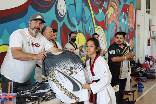 Reynosa, Tam.- El Alcalde Carlos Peña Ortiz con el firme compromiso de respaldar e impulsar el talento deportivo local, brindó su apoyo a la Liga Municipal de Taekwondo, mediante la entrega de playeras realizada por conducto del Instituto Municipal del Deporte.
