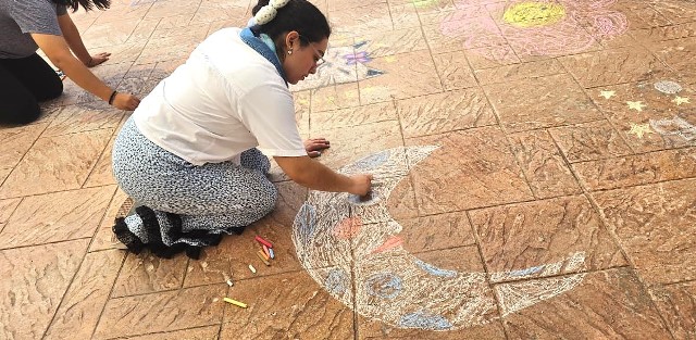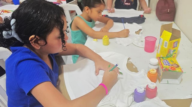 Tras el octavo día de actividades, los estudiantes han explorado técnicas como colorear y recortar dibujos para convertirlos en rompecabezas, hasta diseñar bocetos de camisetas, creación de collages y experimentar con gises.