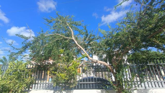 Poda de árboles en la Escuela Primaria de la Colonia La Joya. Se realizó poda de árboles en esta institución educativa para asegurar un entorno seguro para los estudiantes.