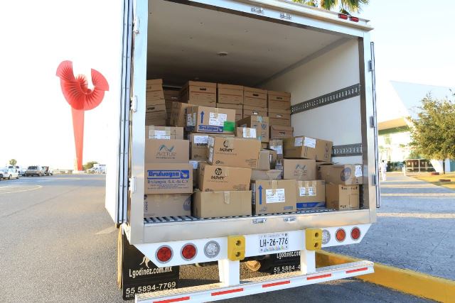 Villarreal Anaya explicó que, con este histórico evento, se ponen en marcha 35 rutas con 15 camiones que transportarán más de 215 mil piezas de medicamentos para su distribución constante y efectiva a 289 centros de salud en el estado.