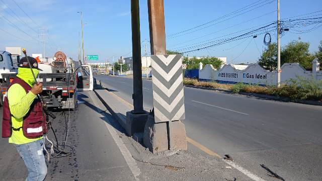 Este día las cuadrillas de la Secretaría de Servicios Públicos trabajan en el embellecimiento del bulevar Del Maestro; corte de maleza en calles y área verde en la colonia Hacienda Las Fuentes, así como lavado del puente Jarachinas en el libramiento Monterrey-Reynosa.