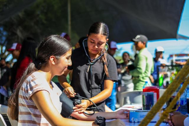 La comitiva fue recibida por el Director de la escuela, Jaime Gerardo Malacara Navejar, quien dio la bienvenida al representante del Presidente Municipal, el Secretario de Bienestar Social, Héctor Alejandro Olivares Zavala y a la Directora de Atención a la Juventud, Karla González Sánchez.