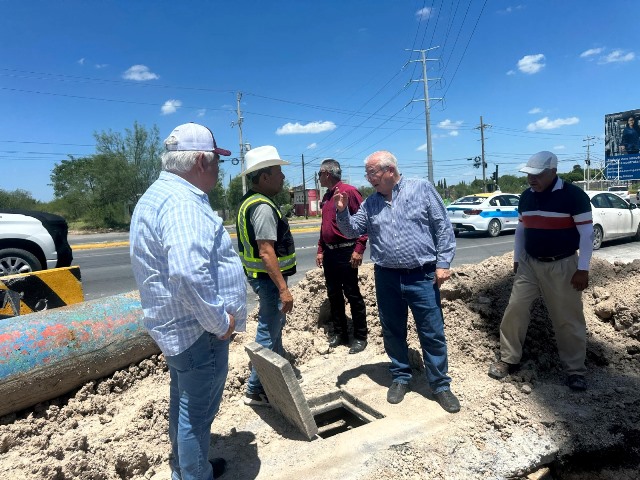 En la colonia Jarachina Norte se visitaron dos frentes de trabajo; uno en calle Israel, esquina con bulevar Hidalgo, donde se realizan trabajos de mantenimiento y preparativos en la caja de válvulas, para regular el servicio en el sector. Y otro en calle Rosario, esquina con bulevar Hidalgo, en donde se efectuó el reemplazo de ductos de 24 pulgadas, una maniobra fundamental para fortalecer la distribución del suministro de agua potable en beneficio de las familias del sector.