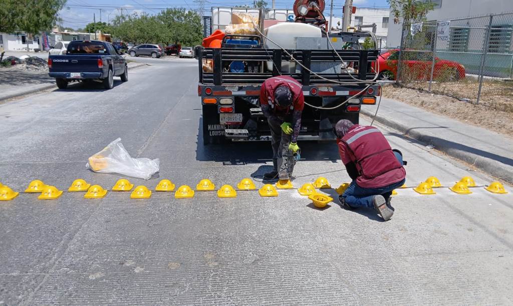 Reynosa, Tam.- La señalización vial horizontal está siendo reforzada con instalación de boyas de tráfico…