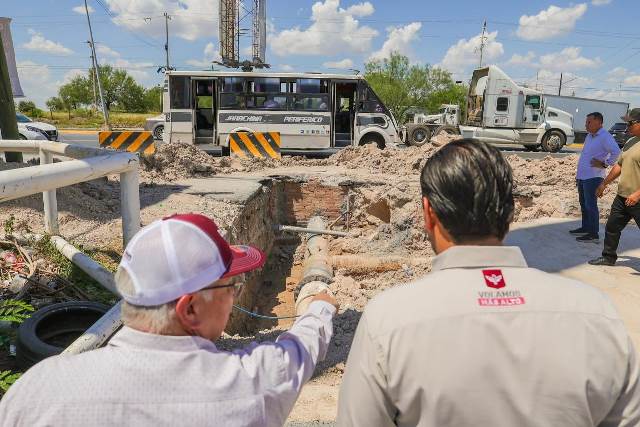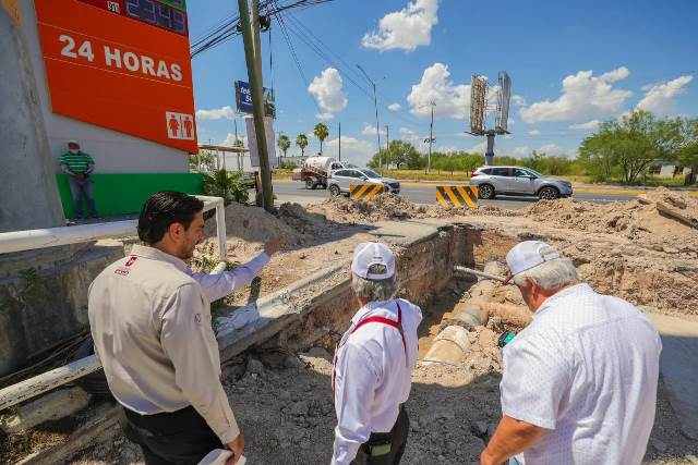 Reynosa, Tam.- El Alcalde Carlos Peña Ortiz supervisó la obra de sustitución de tubería de agua potable que se lleva a cabo en la calle Rosario con bulevar Miguel Hidalgo, en la colonia Lomas de Jarachina, municipio de Reynosa.