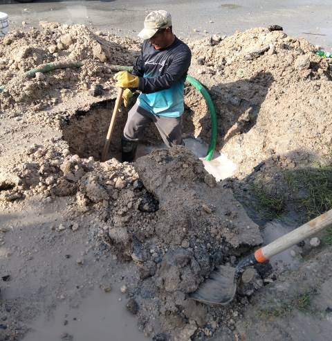 Reynosa, Tam.- Por instrucciones del alcalde, Carlos Peña Ortiz, la Comisión Municipal de Agua Potable y Alcantarillado de Reynosa trabaja en la reparación de fugas de agua potable en diversos puntos de la ciudad, con el objetivo de evitar el desperdicio del vital líquido y garantizar un mejor servicio para los usuarios.