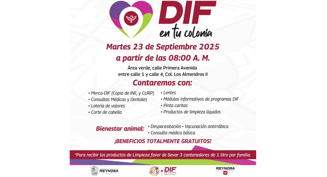 Llevará DIF-Reynosa beneficios gratuitos a la colonia Los Almendros II