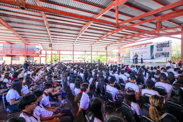«Este apoyo se da gracias a los compromisos que hicimos los gobiernos de transformación, buscando que se quede atrás ese México donde a veces no alcanzaba para ir a la escuela», reafirmó el Presidente Municipal ante estudiantes de nivel Bachillerato.
