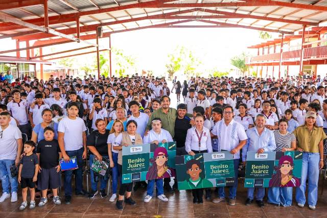 «Este apoyo se da gracias a los compromisos que hicimos los gobiernos de transformación, buscando que se quede atrás ese México donde a veces no alcanzaba para ir a la escuela», reafirmó el Presidente Municipal ante estudiantes de nivel Bachillerato.