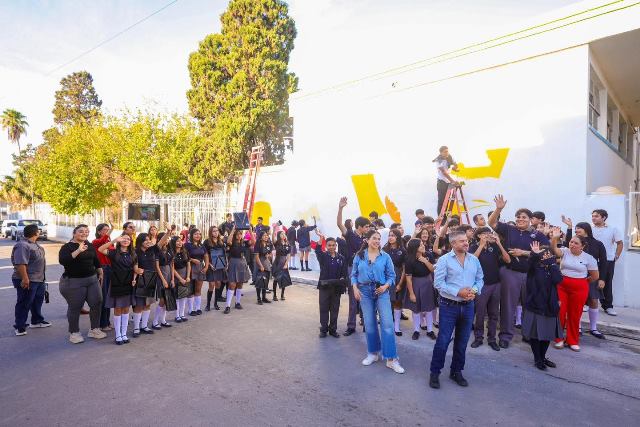 Reynosa, Tam.- El Gobierno del Alcalde Carlos Peña Ortiz tuvo una participación destacada en la Segunda Jornada Nacional de Tequios y Murales «Por la Paz y Contra las Adicciones», impulsada por la Presidenta Claudia Sheinbaum Pardo, en la que estudiantes de la escuela preparatoria José de Escandón se integraron en los más de 1 millón 200 mil jóvenes que este día, viernes 25 de septiembre, trazaron líneas y colores en 8 mil intervenciones artísticas.
