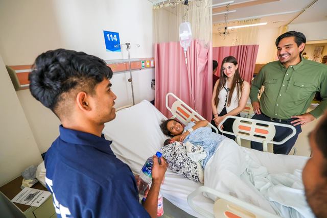 - Carlos Peña Ortiz y Alejandra Yelitza Garza visitaron a las madres de neonatal en el Hospital Materno Infantil de Reynosa.