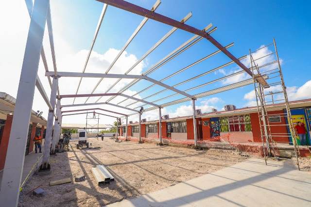 Reynosa, Tam.- «Supervisamos la Construcción de Techumbre Metálica en la Escuela Primaria Federal Aquiles Serdán, en la colonia Rancho Grande; sabemos que invertir en infraestructura educativa es invertir en el futuro de nuestras niñas y niños, porque cada obra en una escuela es una oportunidad para aprender en mejores condiciones», aseguró el Presidente Municipal Carlos Peña Ortiz.