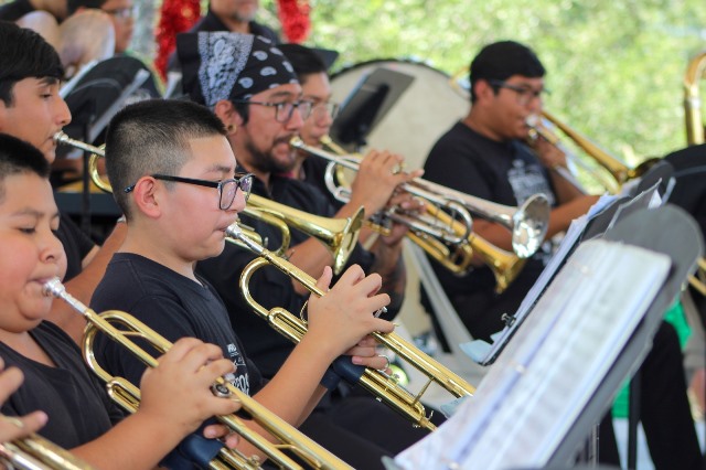La Banda Sinfónica Municipal “Maestro Elías Valenzuela” del Instituto Reynosense para la Cultura y las Artes, bajo la dirección del Maestro Enrique Martínez Ruiz, ofreció un repertorio que incluyó piezas como “Viva México”, “Cielito lindo”, “Sobre las olas” y “Marcha de Zacatecas”.