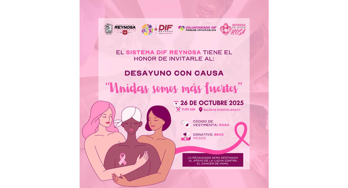 Invita DIF-Reynosa y Voluntariado al Desayuno con Causa “Unidas Somos Más Fuertes” en apoyo a la lucha contra el cáncer de mama