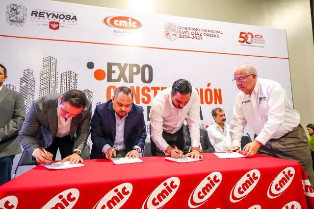 «Uno de los principales motores económicos del municipio es la construcción, somos una de las ciudades que más crece a nivel nacional y donde tenemos que enfocar los esfuerzos de todos para aportar nuestro granito de arena para que Reynosa siga creciendo», aseguró el Presidente Municipal, quien firmó Convenios de Colaboración con la participación de la COMAPA.