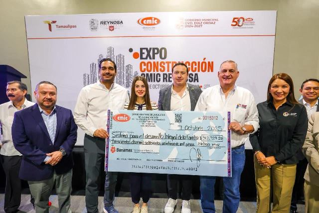 Reynosa, Tam.- La Delegación Tamaulipas de la Cámara Mexicana de la Industria de la Construcción, CMIC, celebró con el Alcalde Carlos Peña Ortiz, su 50 Aniversario, con la presencia de Pablo Eduardo Haro Panduro, dirigente estatal y del dirigente local, Roberto Aviles Arizpe; Expo Construcción CMIC Reynosa 2025 reunió a expositores de Servicios y productos del ramo.