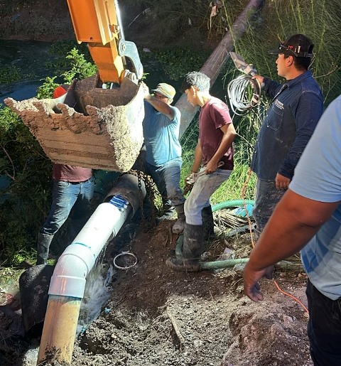 En atención a los reportes ciudadanos, personal del turno vespertino realizó la instalación de codos en el cruce de la colonia Delicias hacia la colonia Azteca, con el objetivo de reforzar la red de distribución y mejorar la presión del servicio en la zona.