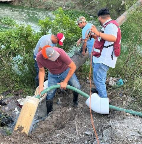 Reynosa, Tam.- Por instrucciones del Presidente Municipal, Carlos Peña Ortiz, la Comisión Municipal de Agua Potable y Alcantarillado de Reynosa llevó a cabo maniobras de reparación de una fuga de agua potable sobre Libramiento Oriente, en la colonia Ampliación Delicias, la cual afectaba el suministro en el sector.