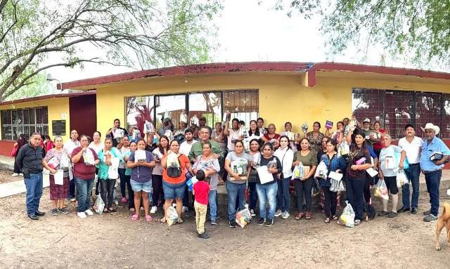 Reynosa, Tam.- Atendiendo la instrucción del alcalde Carlos Peña Ortiz, se llevó a cabo la última entrega del proyecto «Caminito de la Escuela», gestionado por la Jefatura de Asuntos Religiosos a cargo de la Lic. Patricia Ramírez Ruiz, en los ejidos Pedro María Anaya y Doroteo Arango.