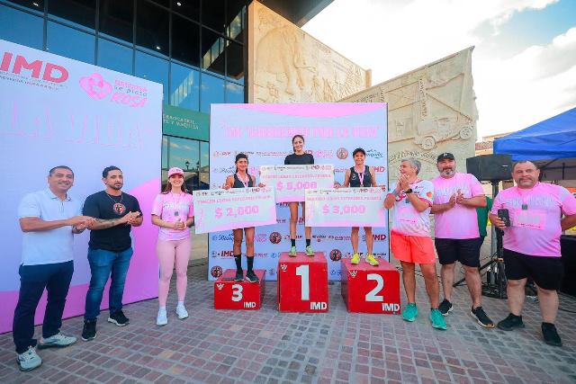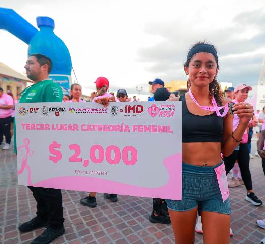 Reynosa, Tam.- En un ambiente lleno de solidaridad y esperanza, más de 500 participantes se unieron este sábado a la Carrera 5K “Corriendo por la Vida”, organizada por el Sistema DIF-Reynosa, que preside Carlos Luis Peña Garza, y el Voluntariado DIF encabezado por Alejandra Yelitza Garza, en coordinación con el Instituto Municipal del Deporte, en el marco del mes Rosa.
