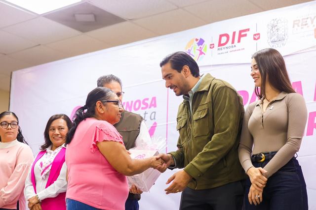 Reynosa, Tam.- En un acto de humanismo y solidaridad a la salud de las mujeres reynosenses, el Alcalde Carlos Peña Ortiz y la Presidenta del Voluntariado DIF-Reynosa, Alejandra Yelitza Garza, entregaron prótesis mamarias externas a pacientes que sufrieron cáncer, un importante acto celebrado este jueves 30 de octubre durante el Mes Rosa.