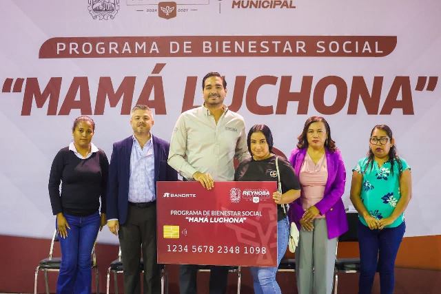 Reynosa, Tam.- El apoyo del Alcalde Carlos Peña Ortiz a las mujeres en Reynosa beneficia también a las madres que luchan cada día por sacar adelante, solas, a sus familias; más de 600 mujeres solteras, viudas y divorciadas, recibieron la tarjeta «Mamá Luchona» con la que tendrán un estímulo mensual para ayudarse en el sostenimiento de sus hijos.