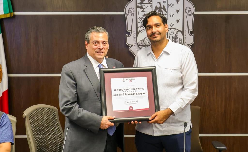 Entregó Carlos Peña Ortiz reconocimiento póstumo a José Sulaimán Chagnón en manos de Mauricio Sulaimán