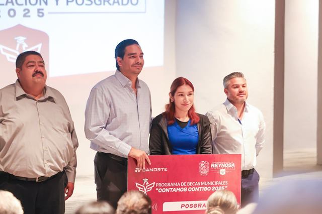 Reynosa, Tam.- El Presidente Carlos Peña Ortiz sigue impulsando la educación en Reynosa a través del Programa de Becas Municipales «Contamos Contigo 2025». En un acto emotivo entregó Tarjetas de Becas a estudiantes de Titulación y Posgrado, beneficiando a más jóvenes en su etapa final de formación profesional.