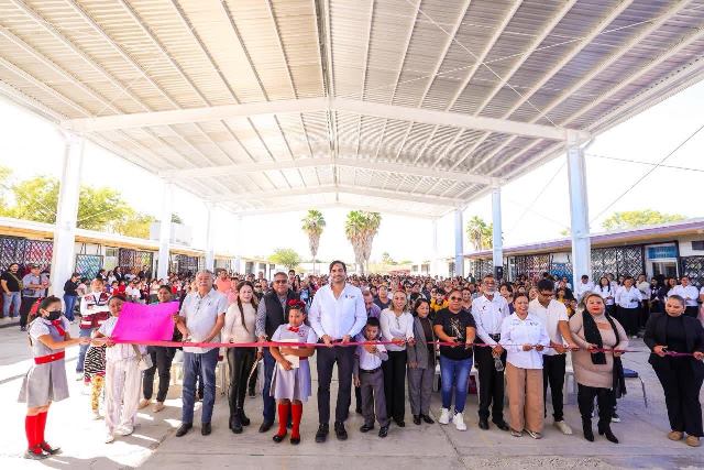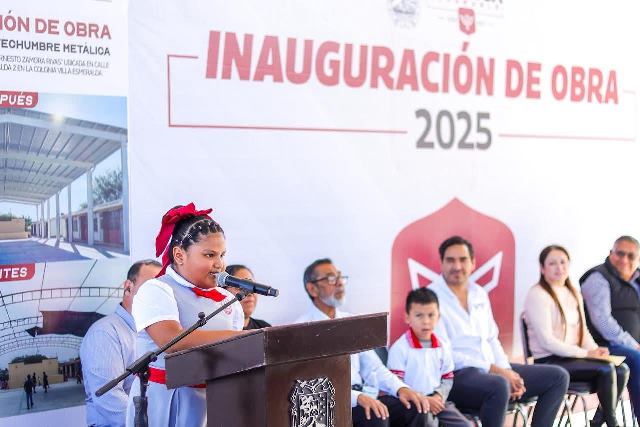 Entregó Alcalde Carlos Peña Ortiz nueva techumbre escolar y anunció pavimentación hidráulica en Villa Esmeralda