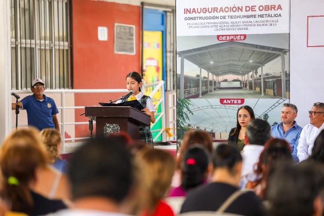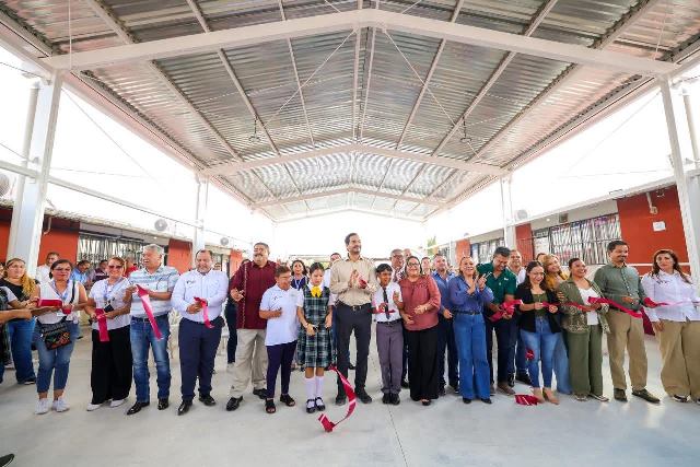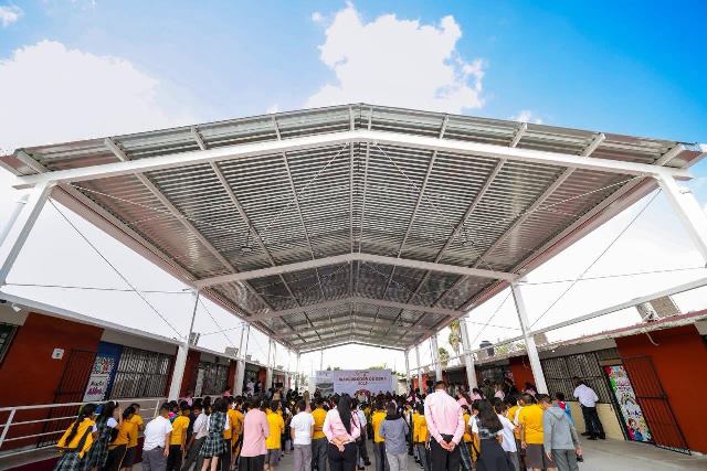 Entregó Carlos Peña Ortiz Techumbre Metálica a la escuela primaria Aquiles Serdán