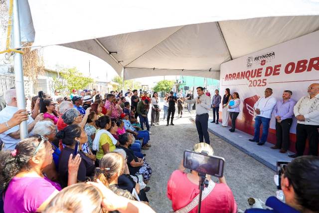Reynosa, Tam.- Vecinos de la colonia Ampliación 16 de septiembre encabezados por la señora Esmeralda Martir Ávila recibieron al Presidente Municipal Carlos Peña Ortiz, con quien dieron arranque a la pavimentación de la calle Agustín Melgar; más de 800 metros cuadrados entre Juan Escutia y avenida Independencia.
