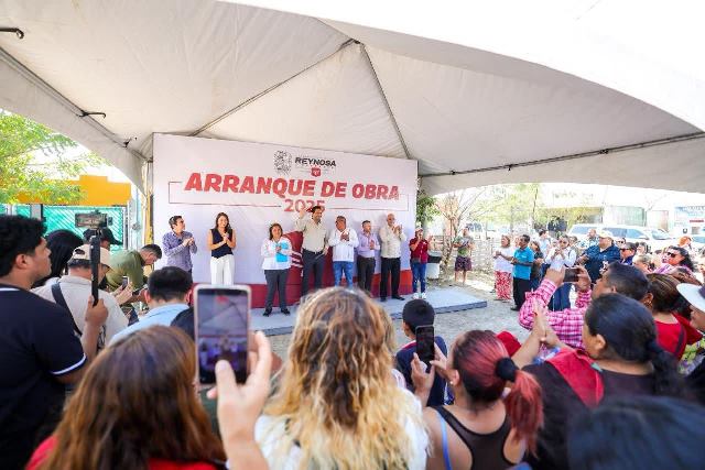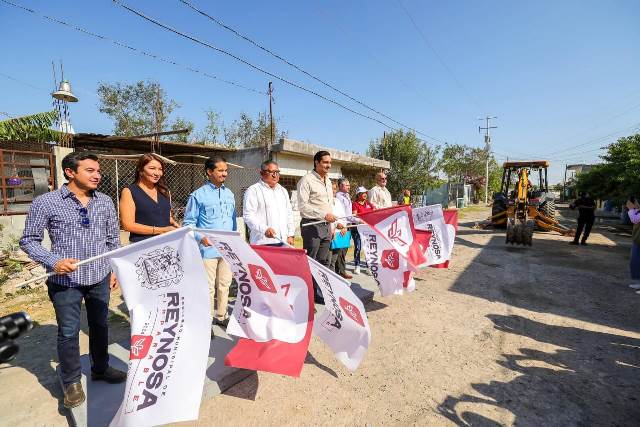 Reynosa, Tam.- Vecinos de la colonia Ampliación 16 de septiembre encabezados por la señora Esmeralda Martir Ávila recibieron al Presidente Municipal Carlos Peña Ortiz, con quien dieron arranque a la pavimentación de la calle Agustín Melgar; más de 800 metros cuadrados entre Juan Escutia y avenida Independencia.