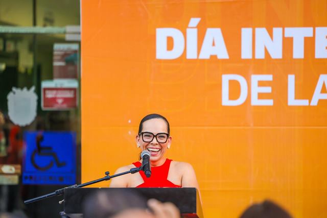 La Directora, en presencia funcionarias y funcionarios del Gobierno Municipal, Regidoras y Regidores, así como de mujeres valientes y comprometidas de la comunidad, emitió un mensaje este 25 de noviembre en la plaza principal Miguel Hidalgo: «esta fecha no solo nos invita a reflexionar, nos convoca a actuar, a transformar realidades, y a fortalecer nuestra comunidad; este color naranja que llevamos significa esperanza, es el color de la vida, de la fuerza, de la luz que ninguna violencia puede apagar».