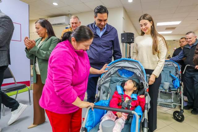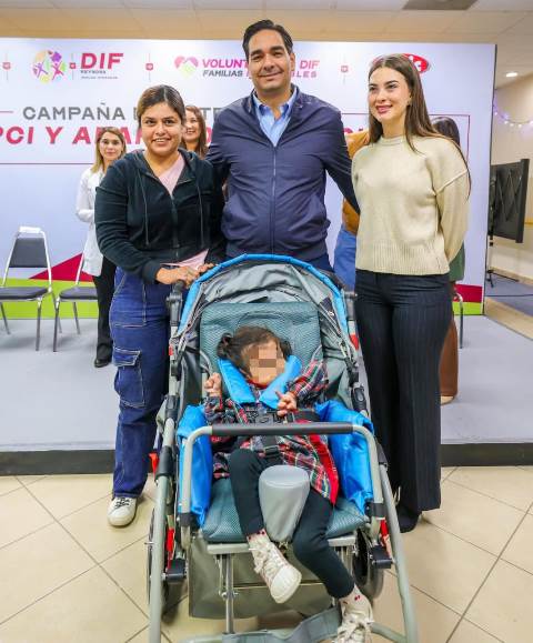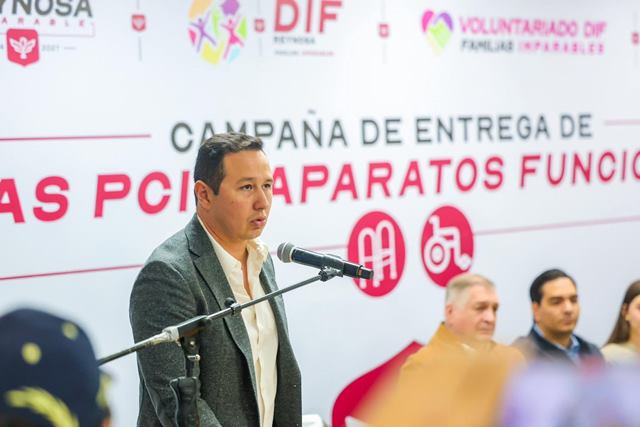 «Estamos muy felices y de fiesta aquí en el CRI con el DIF municipal por seguir dando este tipo de apoyos. Como ya lo había mencionado mi esposa, el día de hoy se están entregando catorce sillas de ruedas de parálisis cerebral tres aparatos funcionales dos ortesis de muslo y un corset», dio a conocer el Presidente Municipal, junto al Lic. Carlos Luis Peña Garza, Presidente del Patronato.
