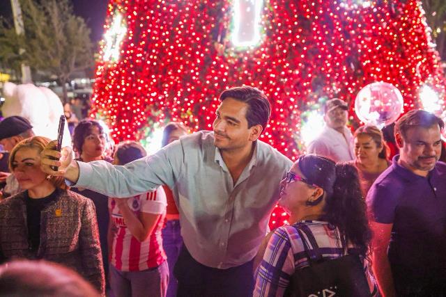 Encendieron Carlos y Alejandra, Pino de Navidad en la Plaza de la República