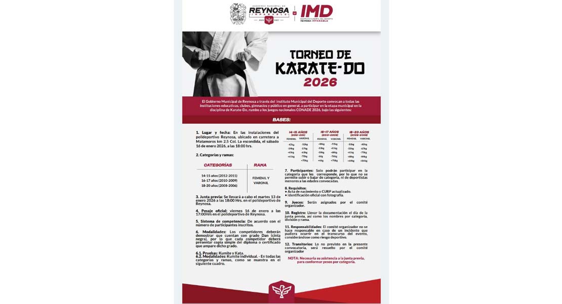 Reynosa, Tam.- El Alcalde Carlos Peña Ortiz, convoca a todas las instituciones educativas, clubes, gimnasios…