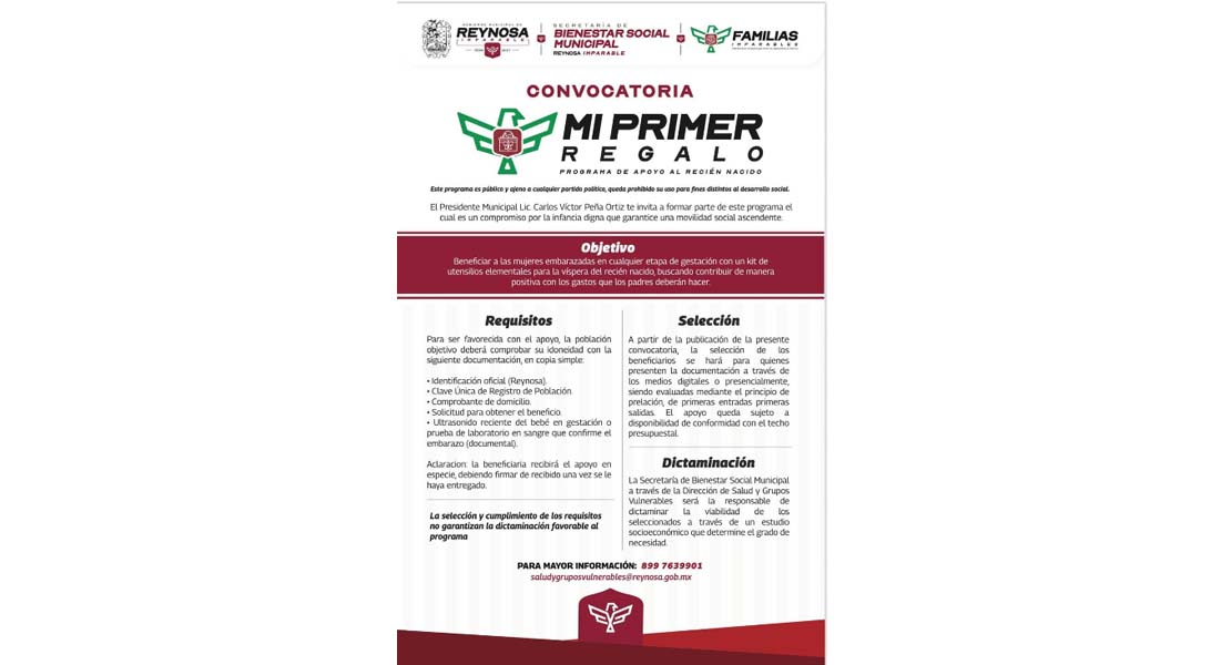 Reynosa, Tam.- El Presidente Municipal Carlos Peña Ortiz convoca a las mujeres embarazadas a inscribirse…