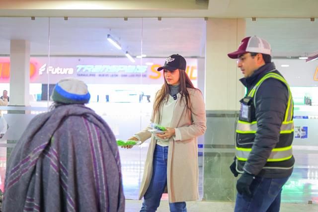 El recorrido fue para detección de personas vulnerables y ofrecer traslado al Albergue habilitado en el Polideportivo, además de entrega de cobijas, calcetines, pan y chocolate caliente, así como el apoyo de Bienestar Animal, quien llevó alimento para las mascotas.