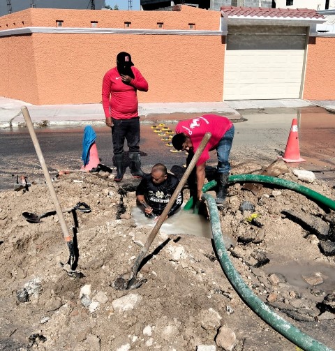 Reynosa, Tam.- La Comisión Municipal de Agua Potable y Alcantarillado de Reynosa llevó a cabo la reparación de fugas de agua potable en distintos puntos de la ciudad, con el objetivo de evitar el desperdicio del vital líquido y mejorar el servicio para las familias reynosenses.