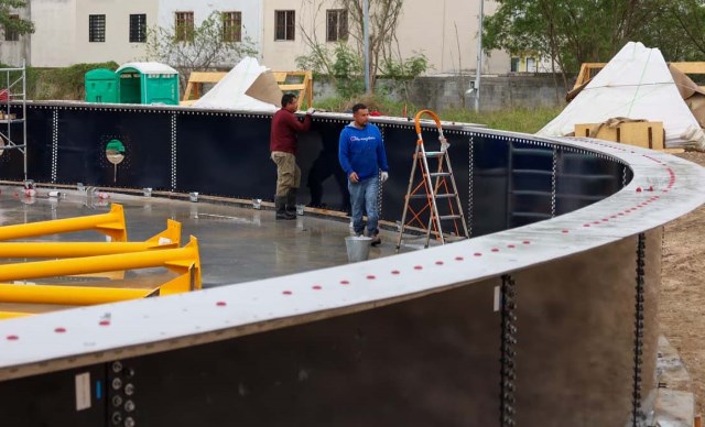Reynosa, Tam.- La Comisión Municipal de Agua Potable y Alcantarillado de Reynosa continúa con los trabajos de construcción del Tanque Cisterna Superficial de Vidrio Fusionado al Acero en la Planta Potabilizadora Rancho Grande, una obra estratégica para fortalecer el sistema de abastecimiento de agua potable en la ciudad.