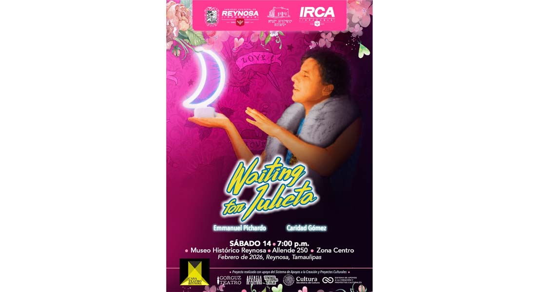 Reynosa, Tam.- El Gobierno de Reynosa, que preside el Alcalde Carlos Peña Ortiz, invita a disfrutar la puesta en escena «Waiting for Julieta» este sábado 14 de febrero a las 19:00 horas en el Museo Histórico Reynosa, con entrada libre para todo el público.