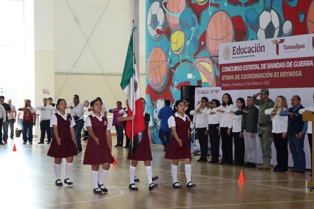 Reynosa, Tam.- Con el objetivo de fortalecer los valores cívicos, el respeto a los símbolos patrios y la formación integral de las y los estudiantes, el Gobierno de Reynosa impulsó la realización del Concurso Estatal de Bandas de Guerra y Escoltas, etapa de Coordinación 02 Reynosa.